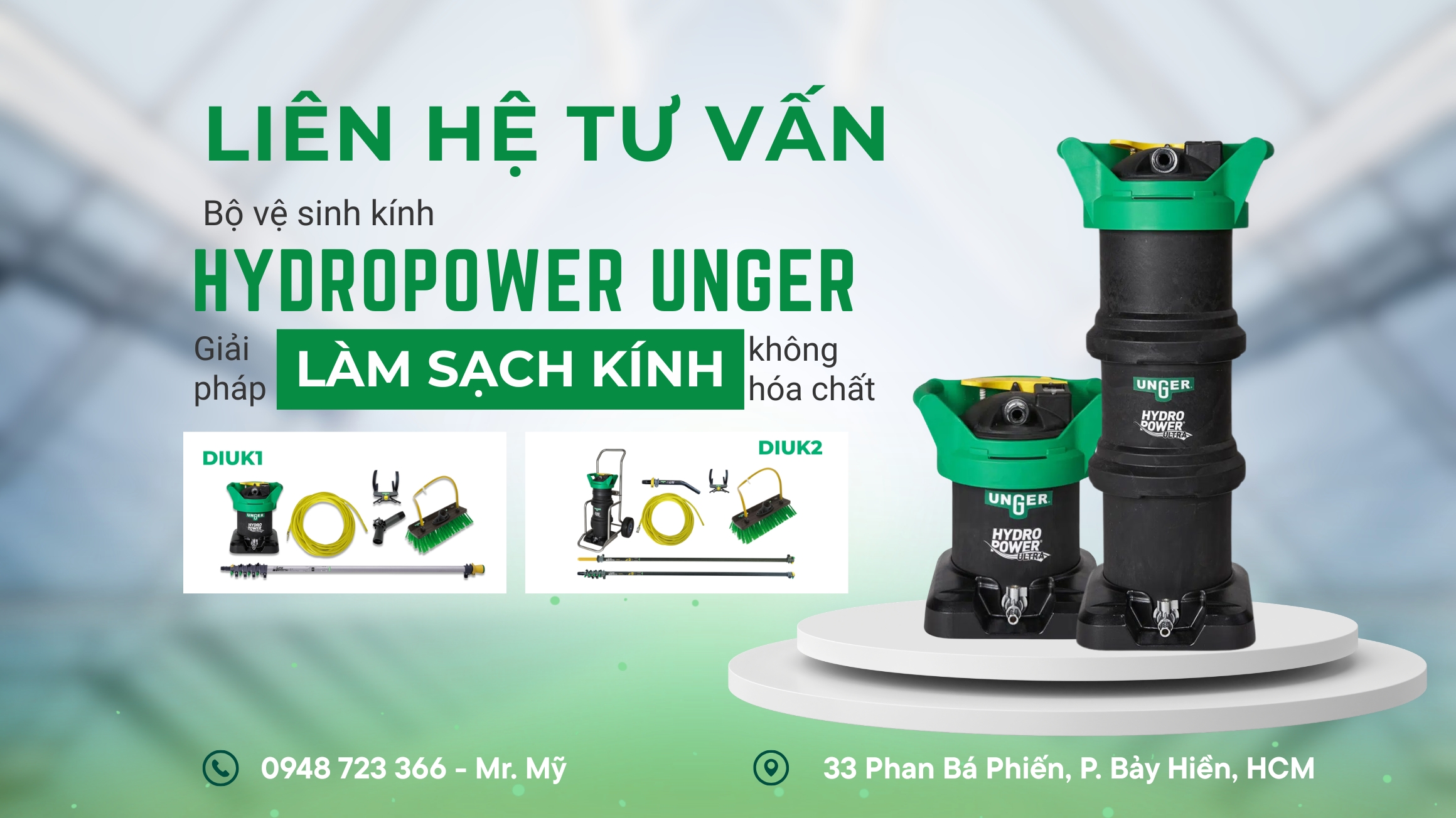 Đó cũng là lý do bộ vệ sinh kính HydroPower Unger trở thành một trong những giải pháp được nhiều đơn vị quan tâm. Đây là hệ thống vệ sinh kính sử dụng công nghệ lọc nước tinh khiết (pure water) để loại bỏ bụi bẩn, cặn khoáng và vết nước mà không cần dùng hóa chất tẩy rửa. Không chỉ giúp làm sạch hiệu quả, giải pháp này còn hỗ trợ doanh nghiệp tối ưu chi phí vận hành, nâng cao năng suất lao động và hướng tới tiêu chuẩn vệ sinh bền vững hơn.