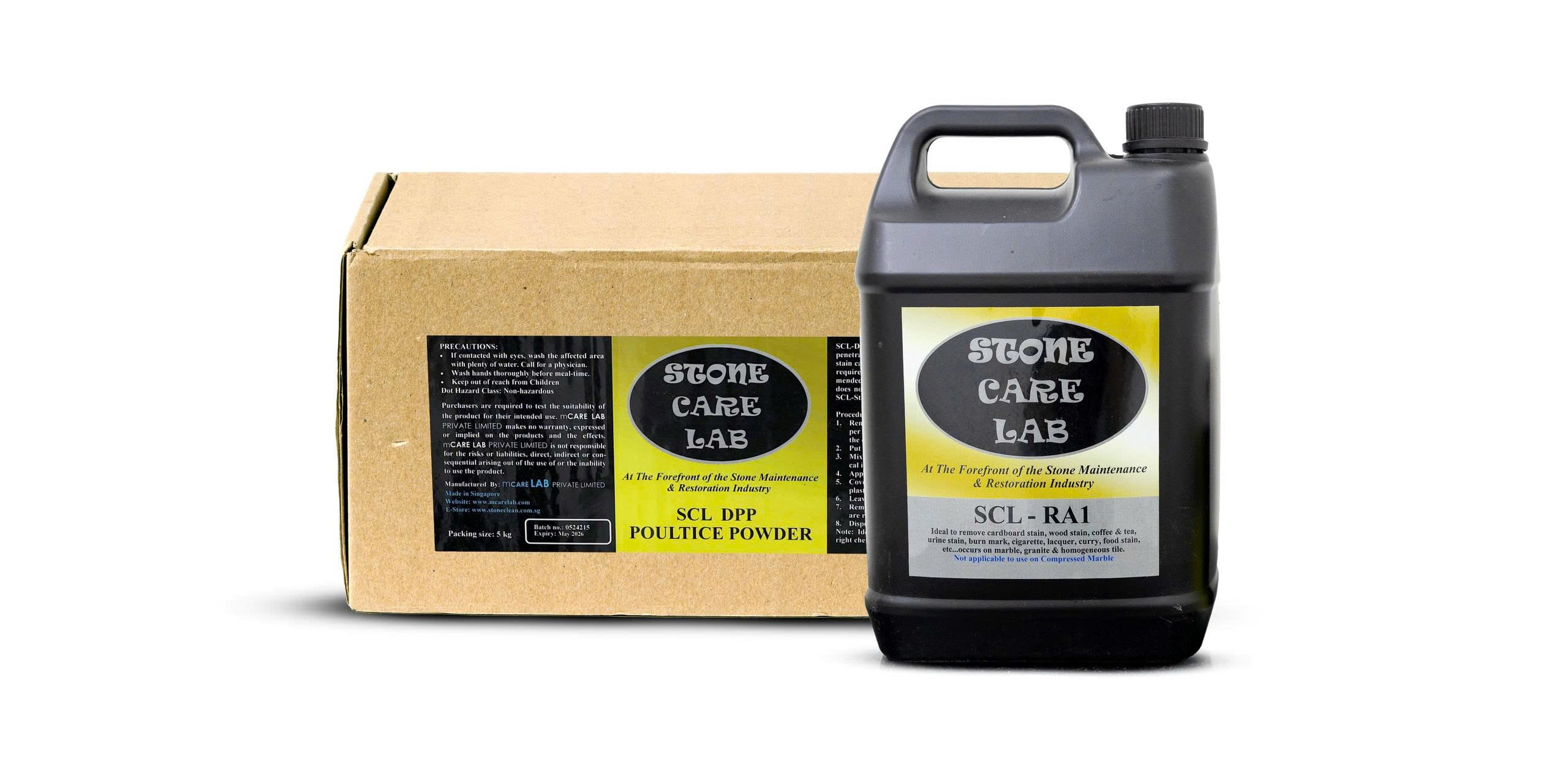 Bột đắp hút vết bẩn mCareLAB SCL-DPP Plain Poultice Powder được thiết kế để kết hợp với hóa chất SCL-RA1 hoặc SCL-RA2 để loại bỏ vết ố vàng, giấy bìa cứng,vết cà phê, trà, vết nước tiểu, các vết màu tối và các vết bẩn hữu cơ …trên đá tự nhiên