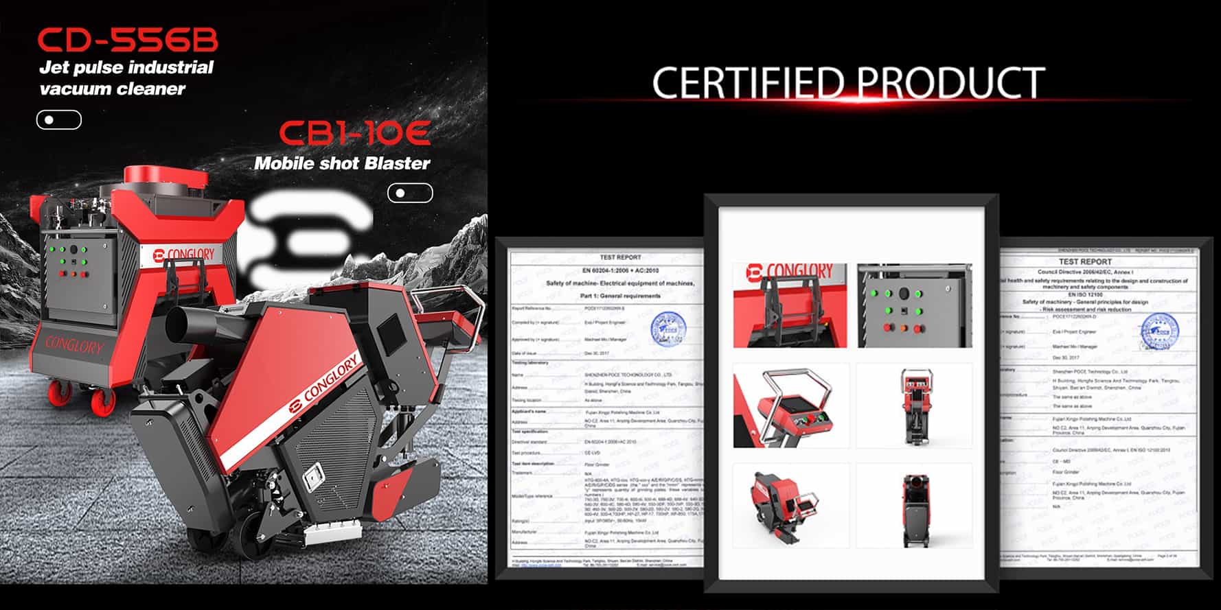 Máy bắn bi Conglory CB1-10E được sử dụng rộng rãi trong các công trình cần tạo nhám bề mặt sàn trước khi thi công sơn PU, đổ bù lớp bê tông do lớp bê tông quá thấp hoặc hạ cốt nền bê tông.
