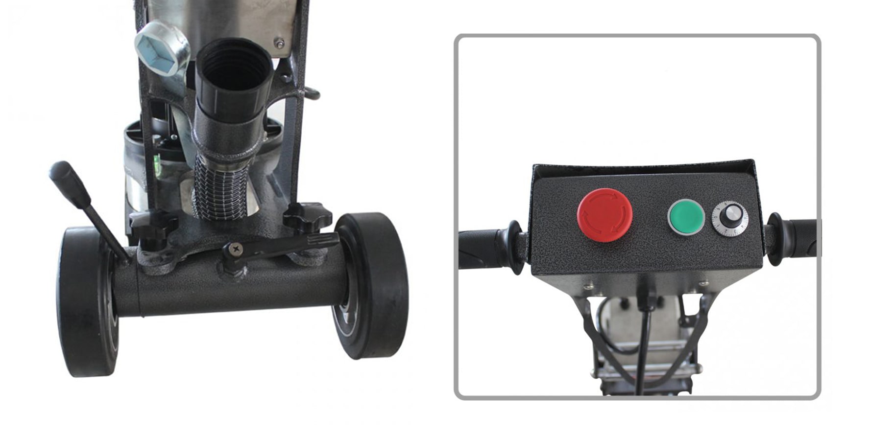 - Thiết kế nhỏ gọn: Giúp máy dễ dàng tiếp cận và mài các khu vực góc cạnh, biên của sàn bê tông.