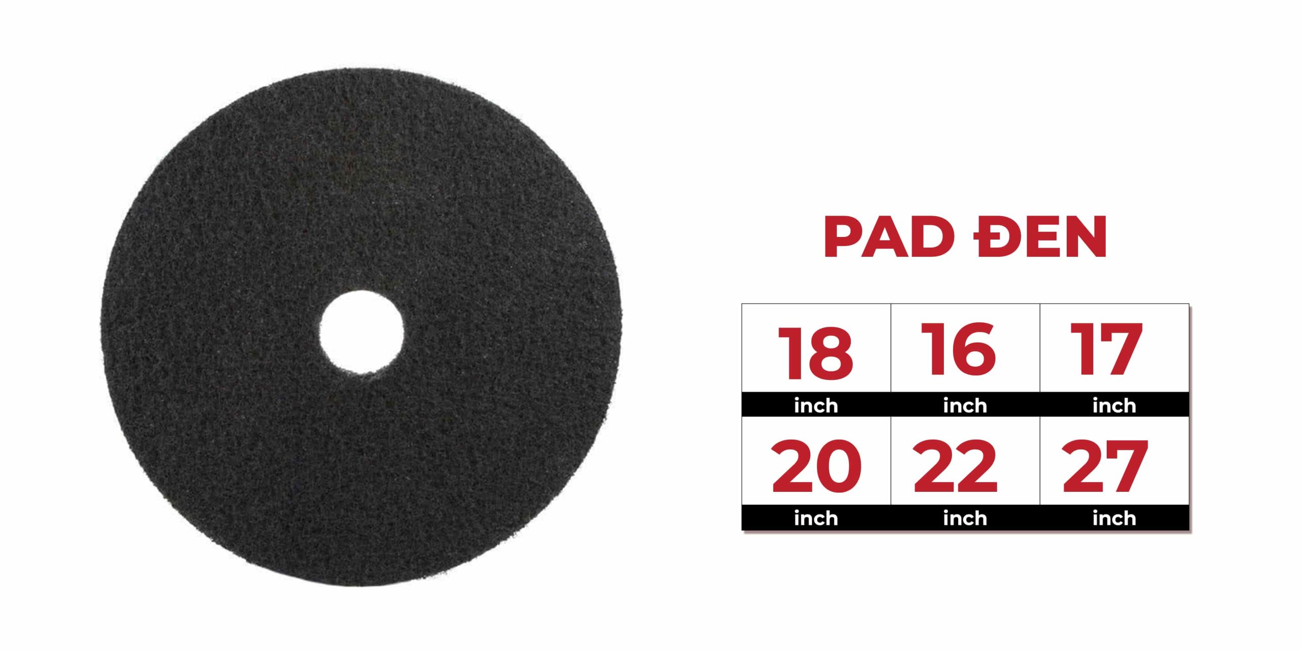 Pad đen có độ cứng cao, chuyên dùng để bóc lớp phủ sàn cũ, làm sạch sâu và xử lý các vết bẩn cứng đầu. Phù hợp cho sàn bê tông, sàn đá và những khu vực cần vệ sinh kỹ lưỡng.